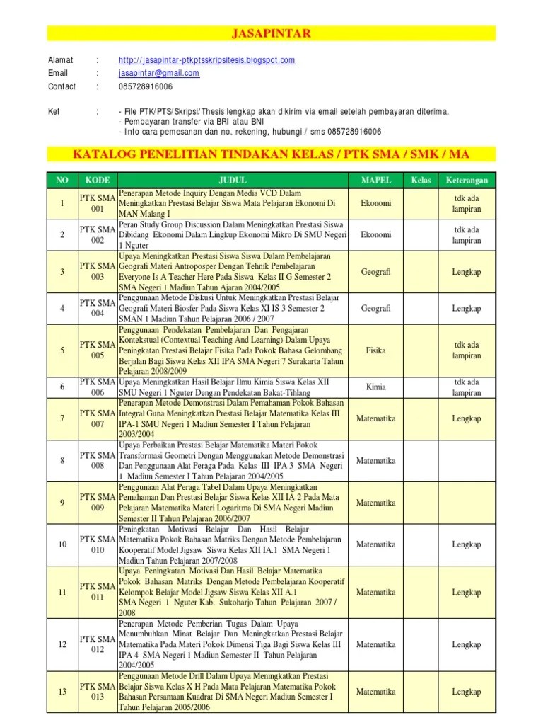 Kumpulan ptk sma / smk terlengkap jilid 1 (penelitian tindakan kelas).